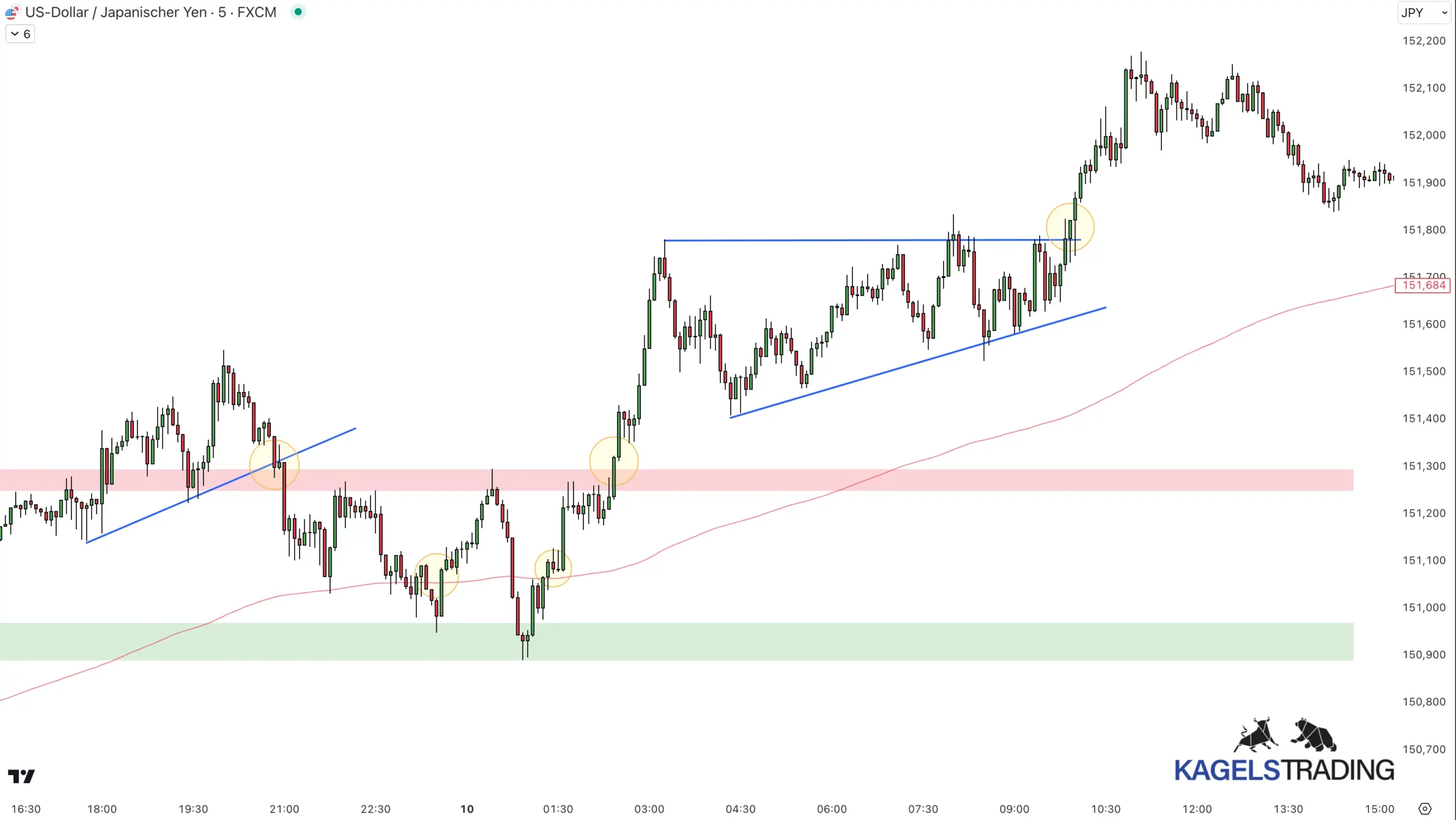 - Direkter Einstieg: Du platzierst deinen Trade sofort beim Ausbruch, um möglichst früh dabei zu sein und den vollen Schwung mitzunehmen.
