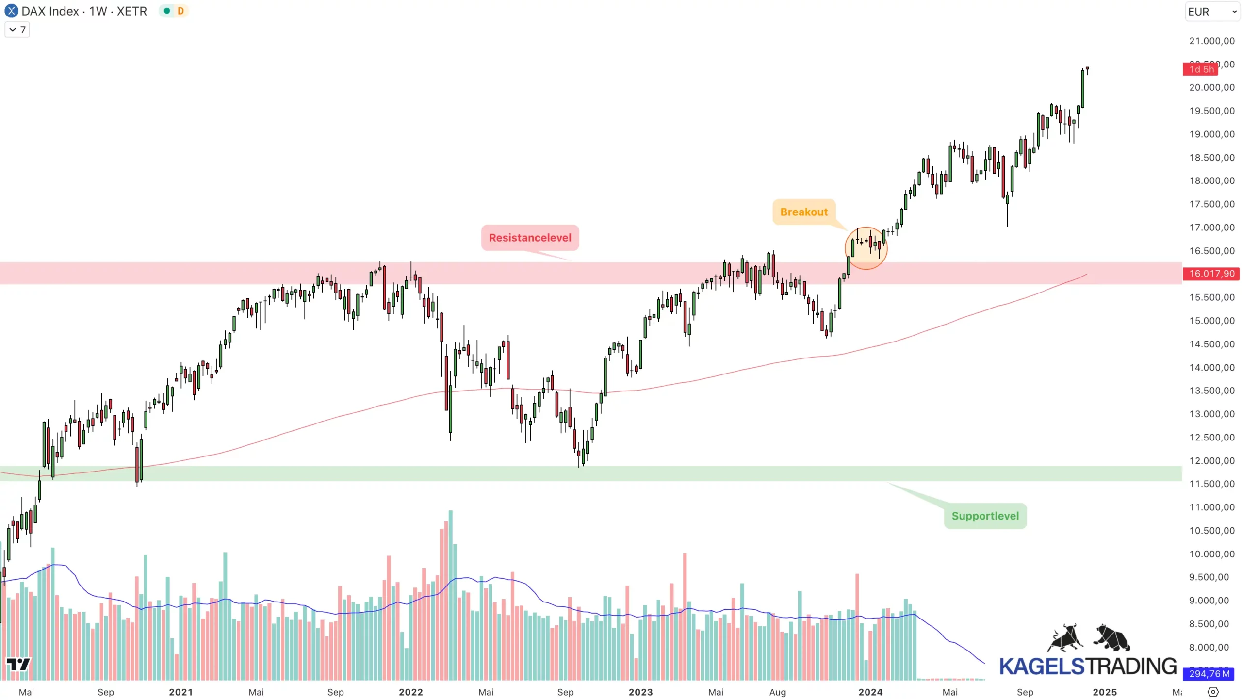 Je deutlicher ein Widerstand oder ein Unterstützungslevel im Chart zu erkennen ist, desto eher orientieren sich auch andere Trader daran. Ein Ausbruch über ein viel beachtetes Preislevel zieht in der Regel mehr Trader an und erhöht damit die Wahrscheinlichkeit, dass der Breakout Bestand hat.