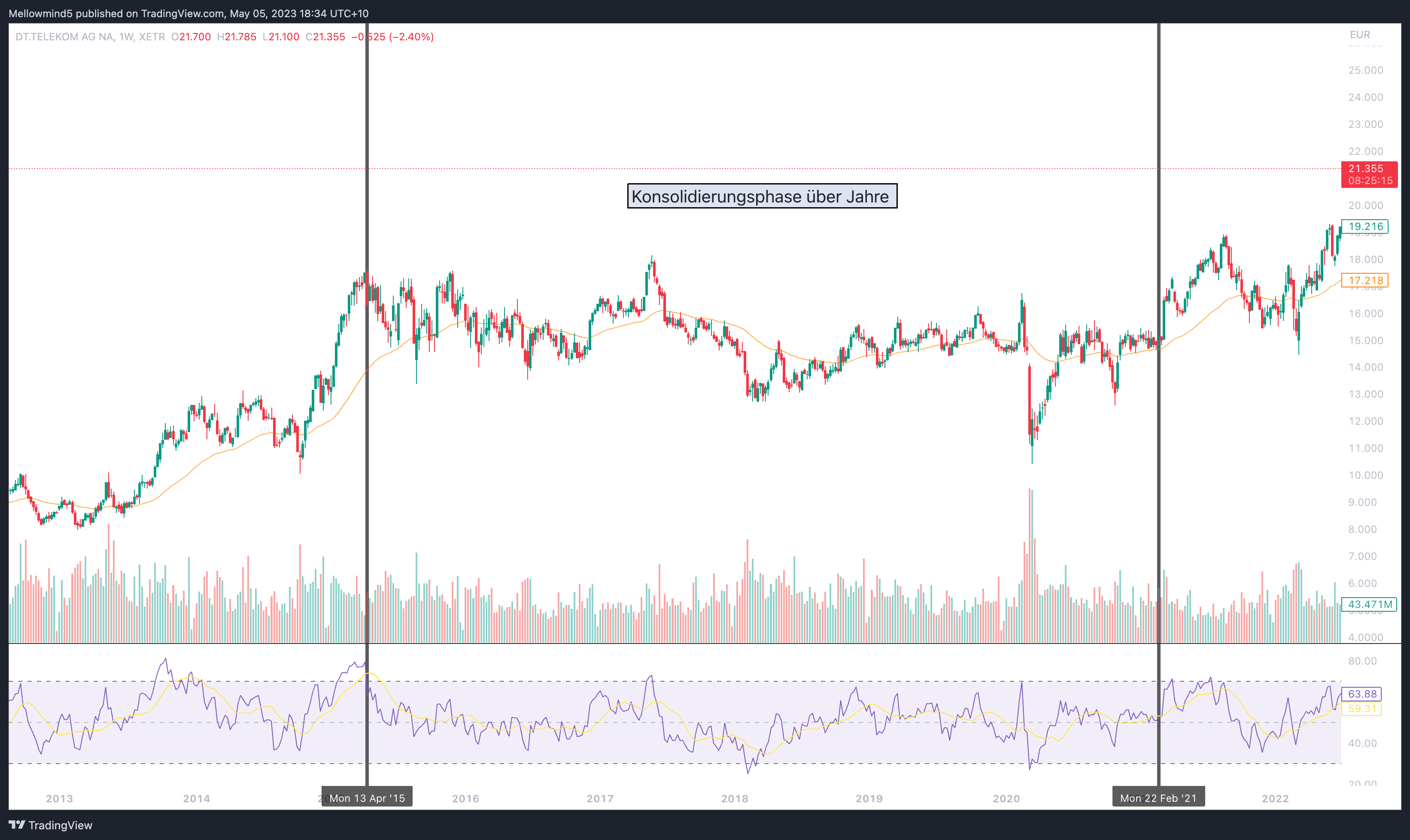 Wenn der Kurs einer Aktie innerhalb der Unterstützungs- und Widerstandsniveaus schwankt, geht man davon aus, dass sich die Aktie in einer Konsolidierungsphase befindet. Diese Phase ist in der Regel durch ein relativ stabiles Handelsvolumen und das Ausbleiben größerer Kursbewegungen gekennzeichnet. Durchbricht der Aktienkurs jedoch das Widerstandsniveau bei überdurchschnittlich hohem Handelsvolumen, so ist dies ein starkes Kaufsignal, das darauf hindeutet, dass die Aktie in eine neue Wachstumsphase eintreten könnte.