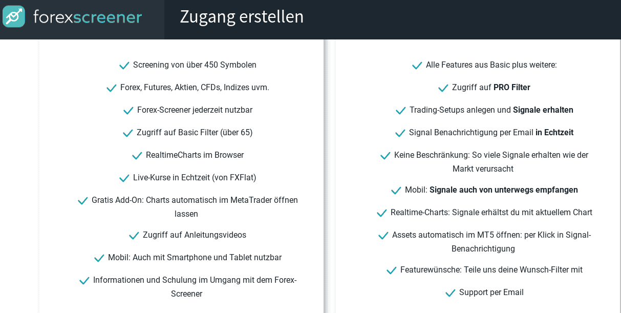 Broker andere – Basic 29 Euro/ Monat oder Forex-Screener-Bundle 49 Euro/ Monat