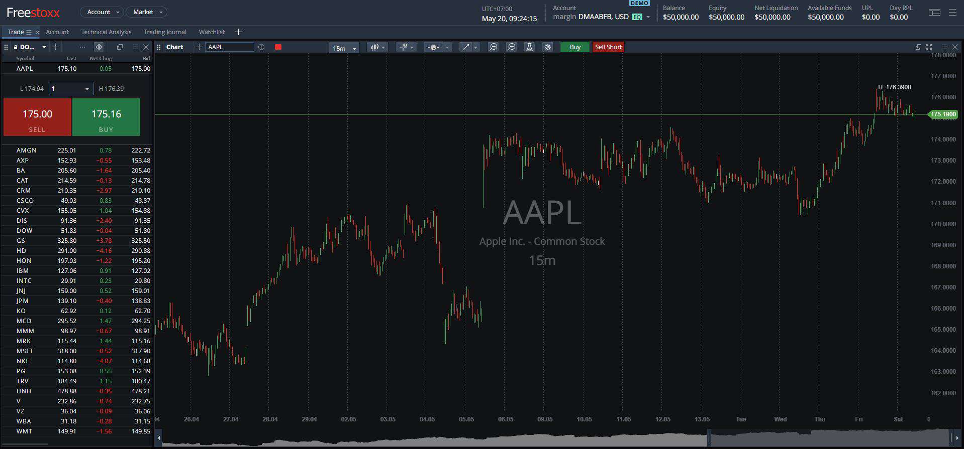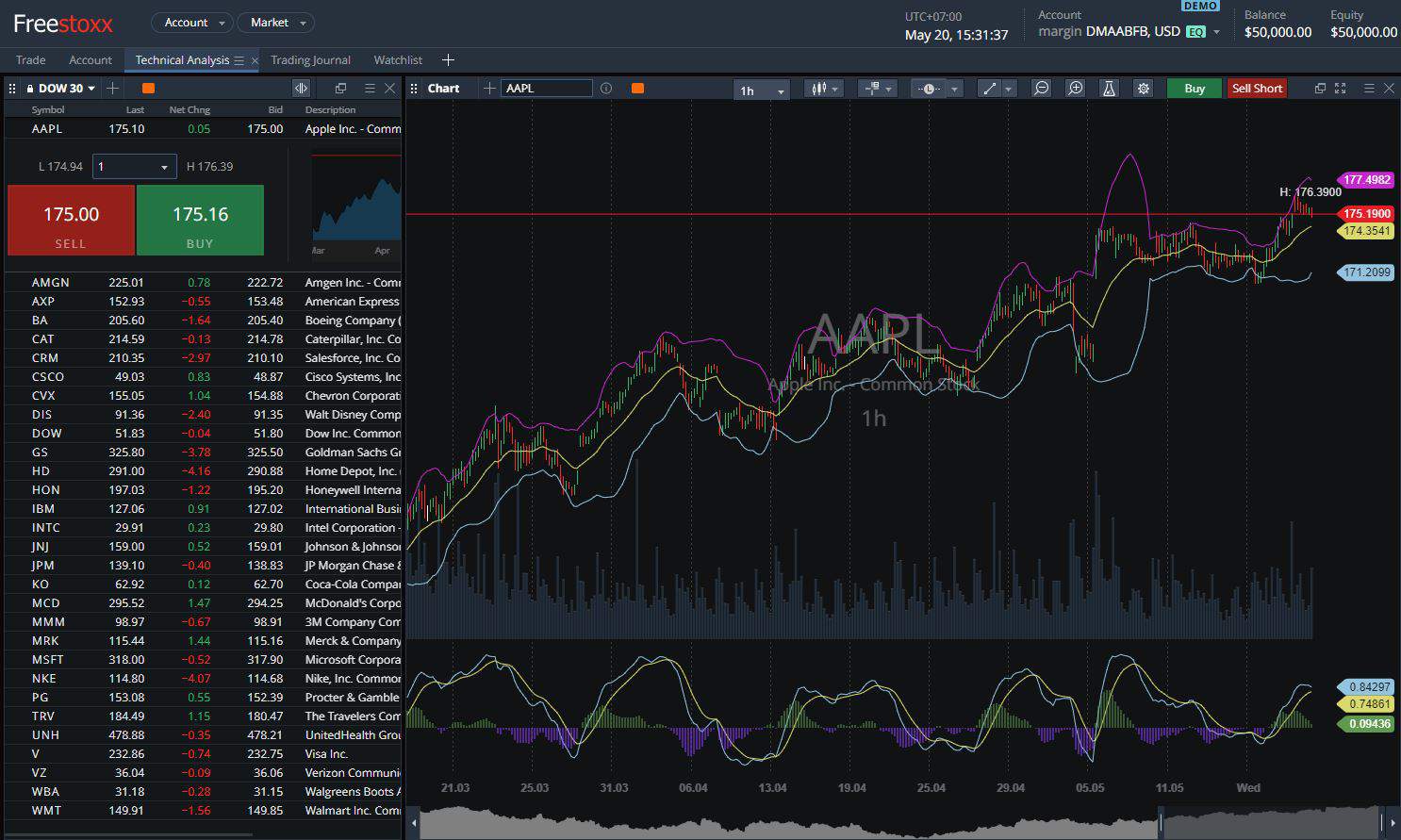 Die Plattform bietet kostenlose Echtzeitkurse, mehr als 91 Indikatoren und 13 Charting-Tools. Außerdem gibt es dort auch ein integriertes Trading-Journal sowie die Möglichkeit zur Erstellung von Watchlisten.