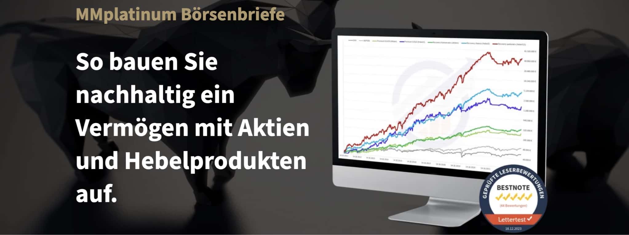 MMplatinum repräsentiert einen Börsendienst, der sich durch eine bemerkenswerte Kombination aus detaillierter Marktanalyse, regelbasierten Handelsstrategien und präzisen Handelssignalen auszeichnet. Entwickelt von dem erfahrenen Finanzexperten Michael Müller, zielt MMplatinum darauf ab, Anlegern einen strukturierten und emotionsfreien Ansatz beim Handeln von Aktien und Hebelprodukten zu bieten. Die Grundlage dieses Dienstes bilden vier spezialisierte Börsenbriefe, die unterschiedliche Anlagestrategien verfolgen, um diverse Anlegerbedürfnisse abzudecken.