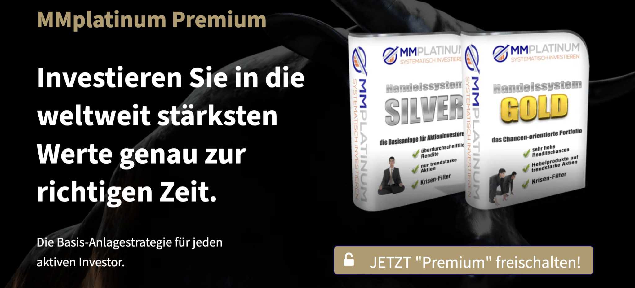 MMplatinum setzt sich aus einer Reihe von Börsenbriefen zusammen, die speziell darauf ausgerichtet sind, Anlegern nicht nur detaillierte Marktanalysen und Handelssignale zu liefern, sondern auch umfassende Anlagestrategien, die auf langfristigen Erfolg ausgerichtet sind. Die Inhalte von MMplatinum sind in drei Hauptkategorien gegliedert: MMplatinum Premium, MMplatinum Recovery und MMplatinum Projekt125, ergänzt durch einen exklusiven Mitgliederbereich, der Zugang zu zusätzlichen Ressourcen und Unterstützung bietet.