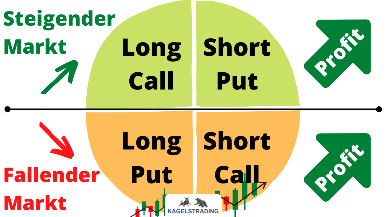 Dementsprechend können im fallenden Markt die Gegenpositionen, nämlich der gekaufte Put oder ein verkaufter Call Profite generieren.