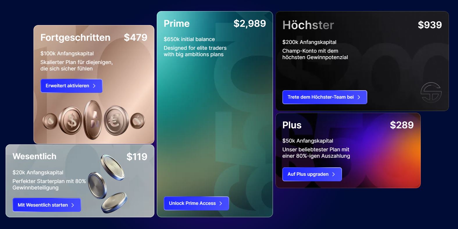 Inzwischen gibt es natürlich einige gute Alternativen im Bereich der Prop-Trading-Firmen, die ebenfalls spannende Möglichkeiten für Trader bieten, mit Fremdkapital zu handeln. Hier sind einige der bekanntesten Optionen:
