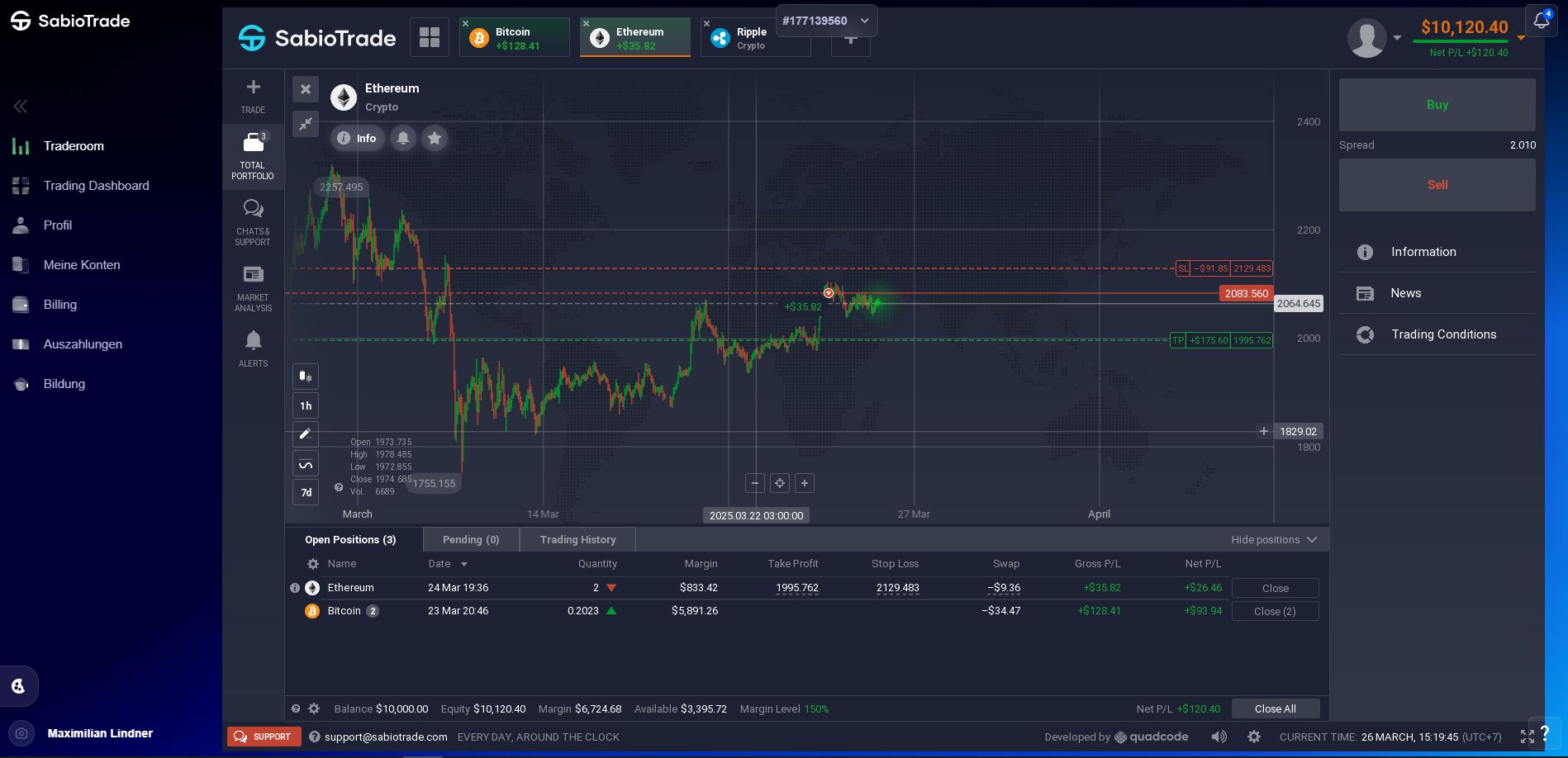 Stattdessen kombiniert die Plattform von SabioTrade ein übersichtliches Dashboard mit einem „Traderoom“, in dem du alle deine Handelsaktivitäten zentral verwalten kannst. Dadurch wird der gesamte Prozess vereinfacht und du kannst dich voll und ganz auf das Trading konzentrieren, ohne dich um technische Hürden kümmern zu müssen.